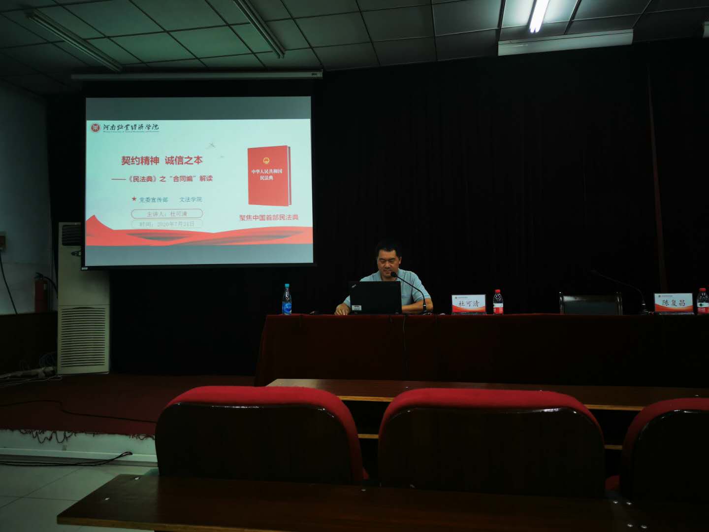 为深入贯彻落实习近平总书记关于广泛开展民法典普法工作的重要指示精神,引导广大干部职工充分认识颁布实施民法典重大意义,根据宣传部“关于开展《中华人民共和国民法典》宣讲活动的通知”要求,7月24日下午3点,beat365平台唯一官网在英才校区E109开展了《中华人民共和国民法典》(以下简称“民法典”)宣讲活动,此次宣讲活动,学院特别邀请文法学院杜可清老师为beat365官网全体教师进行现场宣讲。宣讲会由党委书记陈复昌主持。