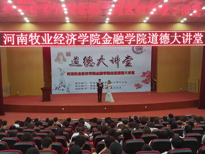 为深入贯彻党的十九大精神,大力培育和践行社会主义核心价值观,树立良好的道德风尚,认真落实我校《关于进一步加强道德讲堂建设》的通知精神,在广大学生青年中营造“学习、关爱、争当道德模范”的浓厚氛围,金融学院于2019年5月29日19:00在学术报告厅举办了以“善于行,德于心——新时代青年与雷锋精神”为主题的道德大讲堂活动。金融学院党总支书记胡红林及全体辅导员老师出席了此次活动。