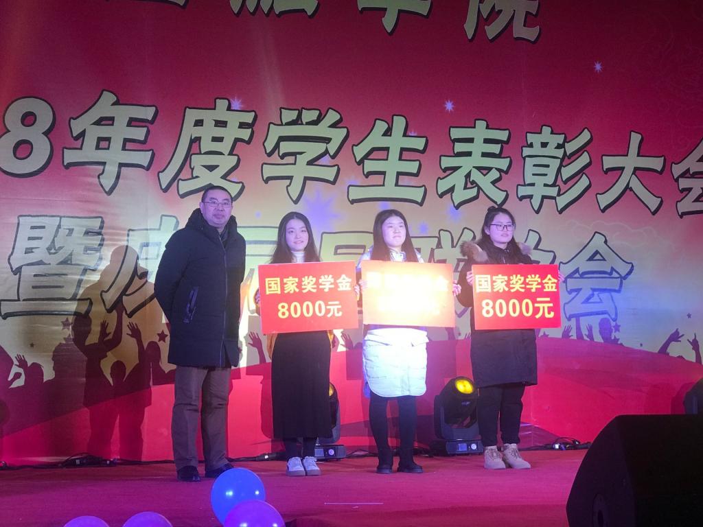 此次表彰大会上共表彰了3位国家奖学金获得者、54位国家励志奖学金获得者、三好学生、优秀学生干部等先进个人奖项,以及3个先进团支部、4个优秀班集体、6个全优宿舍等集体奖项。