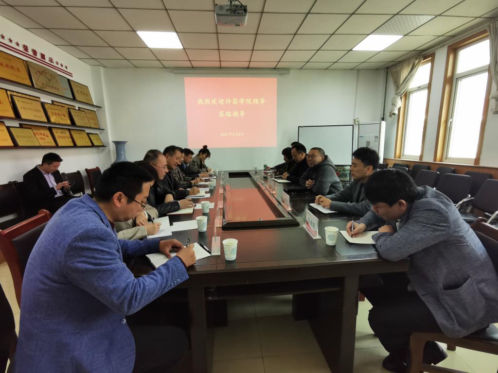 4月8日上午,许昌学院商学院院长张新铭一行到beat365官网考察交流,交流会在beat365平台唯一官网514会议室召开,beat365平台唯一官网院长黄良杰、副院长贾宪军、王培玲、副书记汪晓伟参加交流会。