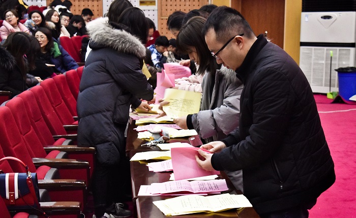 大会采取举手表决的方式通过了《中共河南牧业经济学院beat365平台唯一官网委员会选举办法(草案)》、候选人名单和监票人名单,按照规定的选举程序,以无记名投票方式差额选举产生了新一届委员会委员。陈复昌、黄良杰、汪晓伟、邵翠丽、贾宪军、王培玲、李特等七名同志当选为新一届委员会委员。