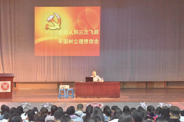 陈书记首先以中国共产党98年艰苦奋斗的“三个阶段”、“三个大事”为主线,为同学们详细介绍了中国共产党发展壮大的光辉历程。陈书记通过解读历史脉络:从1921年到2019年,中国共产党带领全国人民,将中国从一个半殖民半封建的国家发展成现在的世界第二大经济体这一鲜活的事实,着重向同学们讲述中国共产党的伟大奋斗历程。之后,陈书记向同学们介绍了如何以实际行动争取早日加入党组织。同时,陈书记强调,大学生党员应该严格要求自己,要做到四个合格:政治合格、执行纪律合格、品德合格、发挥作用合格,发挥自己的先锋模范作用。最后,陈书记勉励同学们树立正确远大的理想信念,自主学习,自主思考,自主管理,克服一切不利条件,克服环境困难,去主动适应环境,在今后的学习和实践中,以实际行动积极地向党组织靠拢,争取早日加入党组织。
