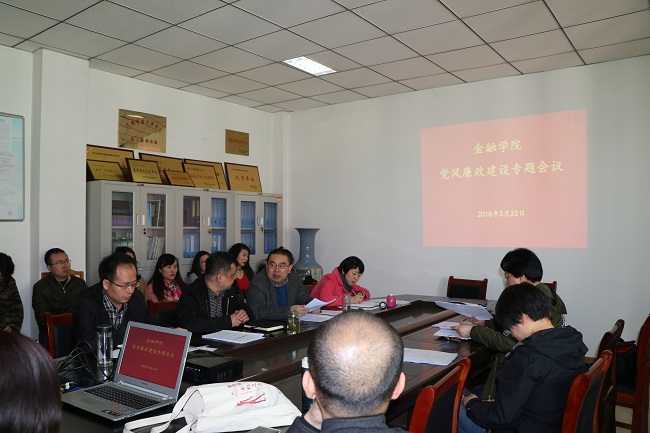 3月22日下午,金融学院在514会议室召开党风廉政建设专题会议,全体教师参加了会议。会议由党总支书记胡红林主持。