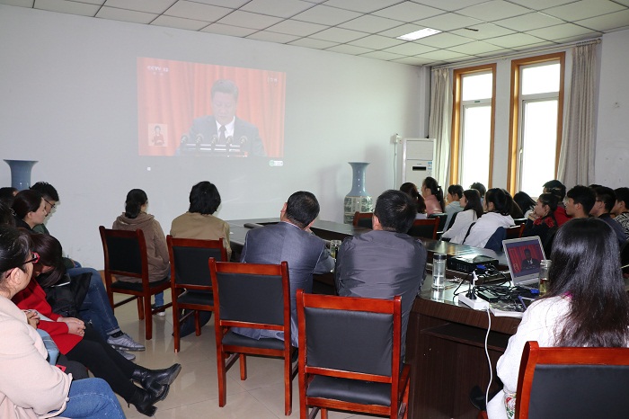 10月18日上午9时,中国共产党第十九次全国代表大会在北京人民大会堂开幕。金融学院党总支书记胡红林、党总支副书记兼副院长贾宪军带领部分师生在院会议室共同收看大会实况,认真聆听习近平总书记的工作报告,畅谈感受。