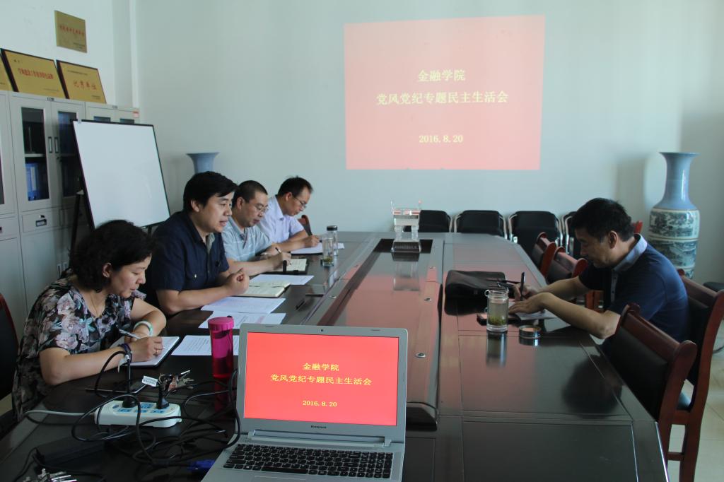 按照《河南牧业经济学院党风党纪专题民主生活会实施方案》有关要求,8月20日下午,金融学院在教学楼514金融学院会议室召开党风党纪专题民主生活会,校党委副书记李绍文莅会指导,金融学院班子成员参加了会议。会议由党总支书记席波主持。