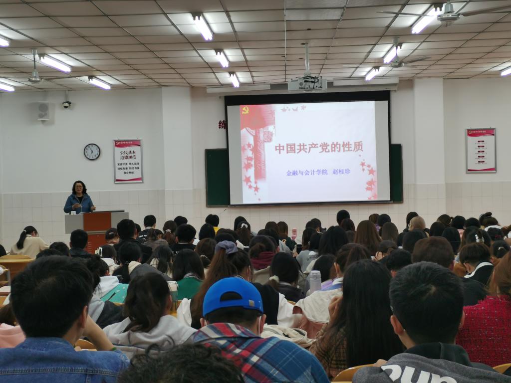 2021年10月20日晚上,beat365平台唯一官网在E309开展了“2021年第二期入党积极分子培训班”第四讲,党课主题为《党的性质与宗旨》。本次党课由beat365平台唯一官网组织员赵桂珍老师主讲。