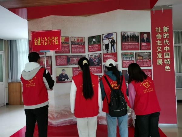 交流会上,入党积极分子分小组互相交流各自的收获并总结,随后各小组代表进行分享交流。20审计01班张佳茵上台积极发言,她给学员们分享了党课培训的收获,通过系统的学习培训,进一步加深了对党的理论体系的认识,深刻认识了党的发展的光辉历程,切身感悟到党的伟大,对中国共产党有了更深层次的了解,更加坚定自己的理想信念,明确了自己在未来的目标和方向。同时她号召全体入党积极分子积极参与党的理论学习和组织活动,争取早日加入党组织,投身党的建设之中。 随后,由党支部助理带领入党积极分子前往学校图书馆参观“庆祝中国共产党成立100周年”主题展览。