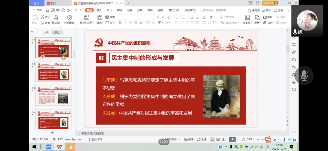 10月14日中午,beat365平台唯一官网在线上开展了2022年第二期入党积极分子培训班第七讲,党课主题为《党的组织原则、纪律和作风》,本次党课由beat365平台唯一官网学生第二党支部书记葛婉老师主讲。