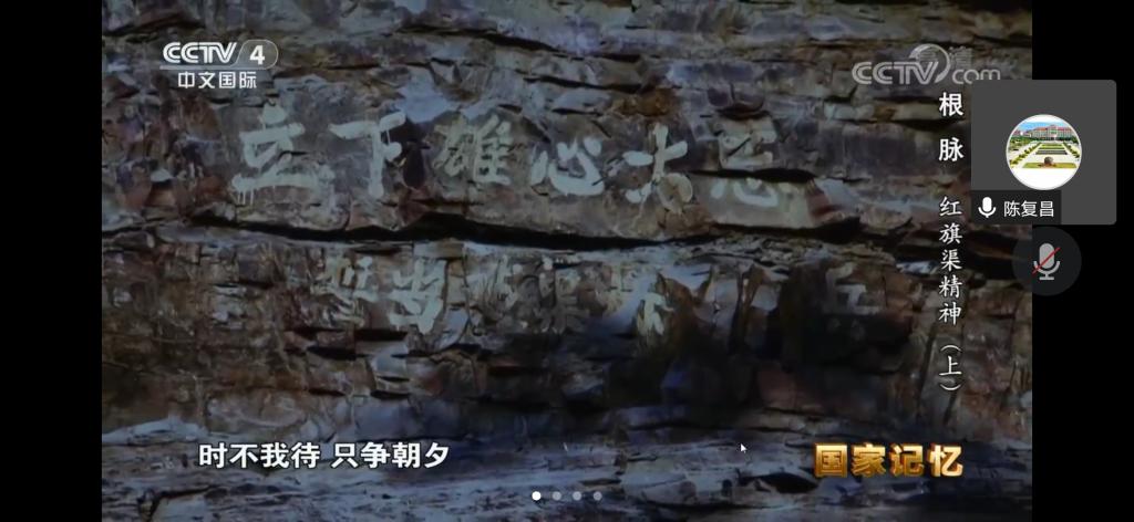 会上,学院党委书记陈复昌带领大家共同深入学习了习近平总书记视察安阳重要讲话精神,深刻领会“红旗渠就是纪念碑,记载了林县人不认命、不服输、敢于战天斗地的英雄气概。要用红旗渠精神教育人民特别是广大青少年,社会主义是拼出来、干出来、拿命换来的,不仅过去如此,新时代也是如此”、“红旗渠精神同延安精神是一脉相承的,是中华民族不可磨灭的历史记忆,永远震撼人心。年轻一代要继承和发扬吃苦耐劳、自力更生、艰苦奋斗的精神,摒弃骄娇二气,像我们的父辈一样把青春热血镌刻在历史的丰碑上”等重要论述。会上并观看了《国家记忆》栏目专题片《根脉——红旗渠精神》,深刻感悟红旗渠精神。