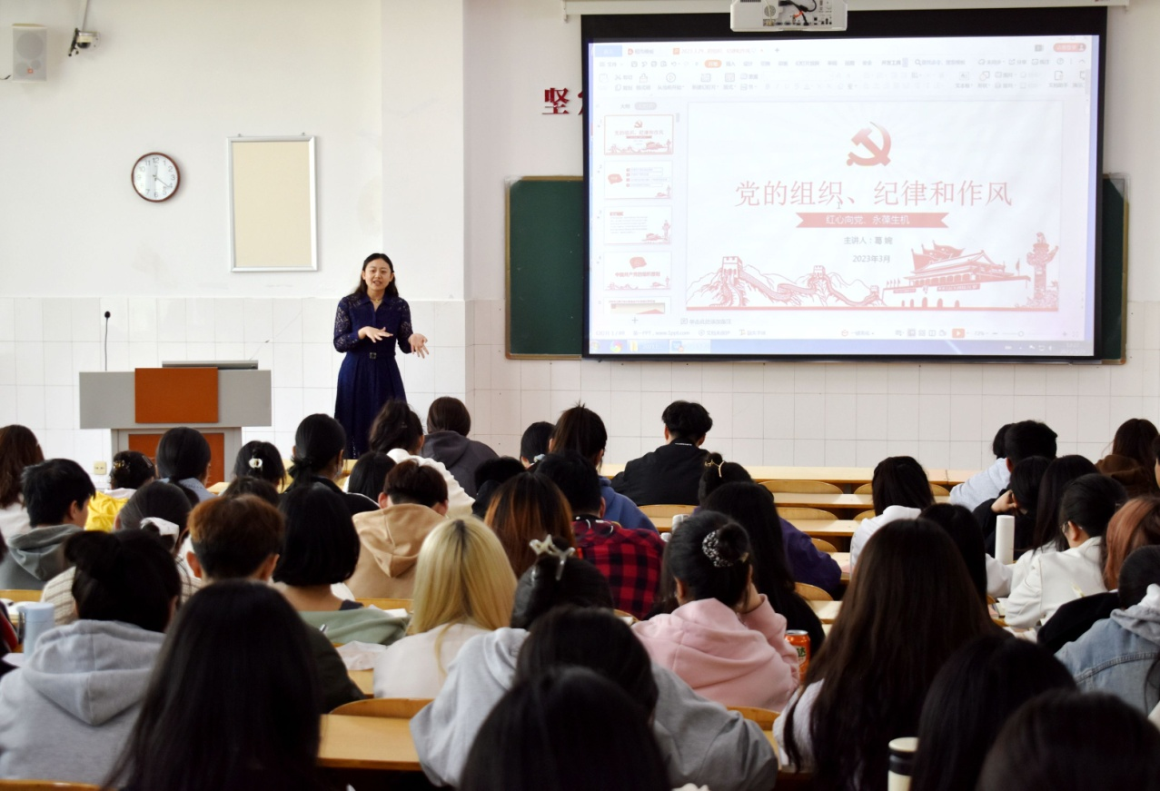 3月29日中午12点,beat365平台唯一官网2023年第一期入党积极分子培训班第三讲在E310教室举行。本次党课的主题是——党的组织原则、纪律和作风,由学生第二党支部书记葛婉老师主讲。