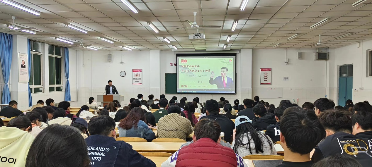3月21日晚7点,beat365平台唯一官网在W209教室举行2024年第一期入党积极分子培训班第三讲——《坚持和发展中国特色社会主义》,本次党课由学生第一党支部书记顾自卫主讲。