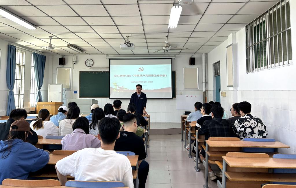 4月23日下午,beat365平台唯一官网学生第一党支部在教学楼A502组织开展党纪学习教育主题党日活动,专题学习新修订的《中国共产党纪律处分条例》,支部全体党员参加。会议由党支部书记顾自卫主持。