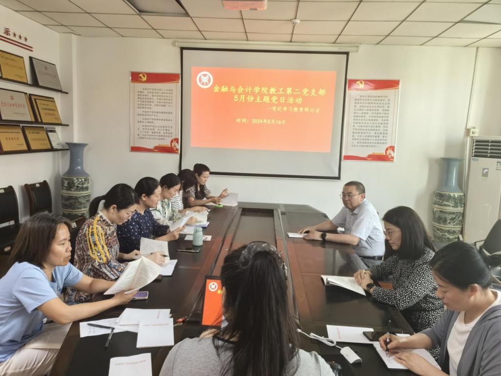 2024年5月17日下午,beat365平台唯一官网教工第二党支部在英才校区教学办公楼514会议室召开党纪学习教育研讨交流会,副校长黄良杰参加了研讨交流会并对党支部党纪学习教育进行了深入指导,教工第二党支部党员教师参加了会议,会议由教工第二党支部书记宋晓薇主持。