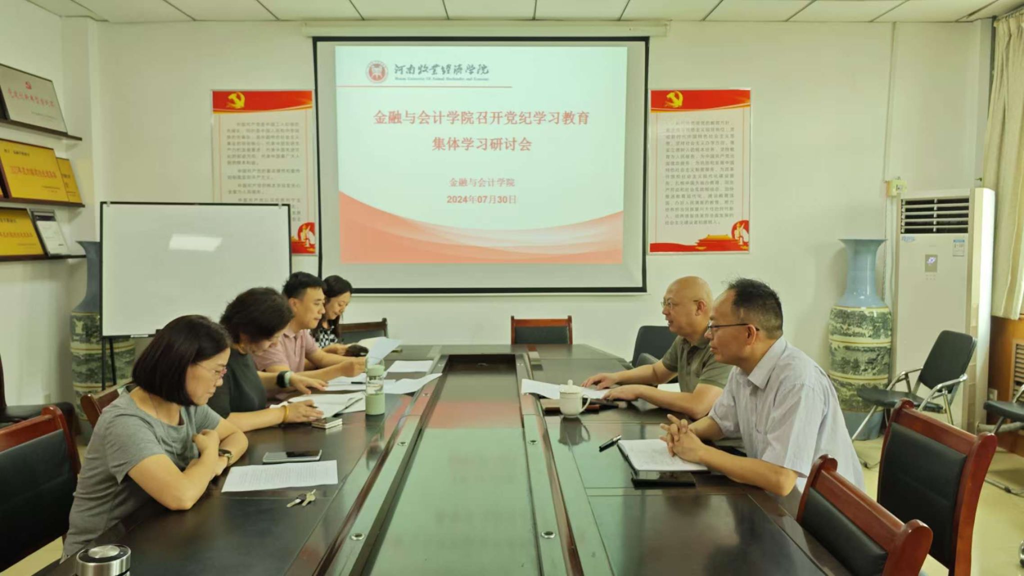 7月30日上午,beat365平台唯一官网在英才校区教学办公楼514会议室召开党委理论学习中心组党纪学习教育集中学习研讨会,会议由学院党委书记陈复昌主持。