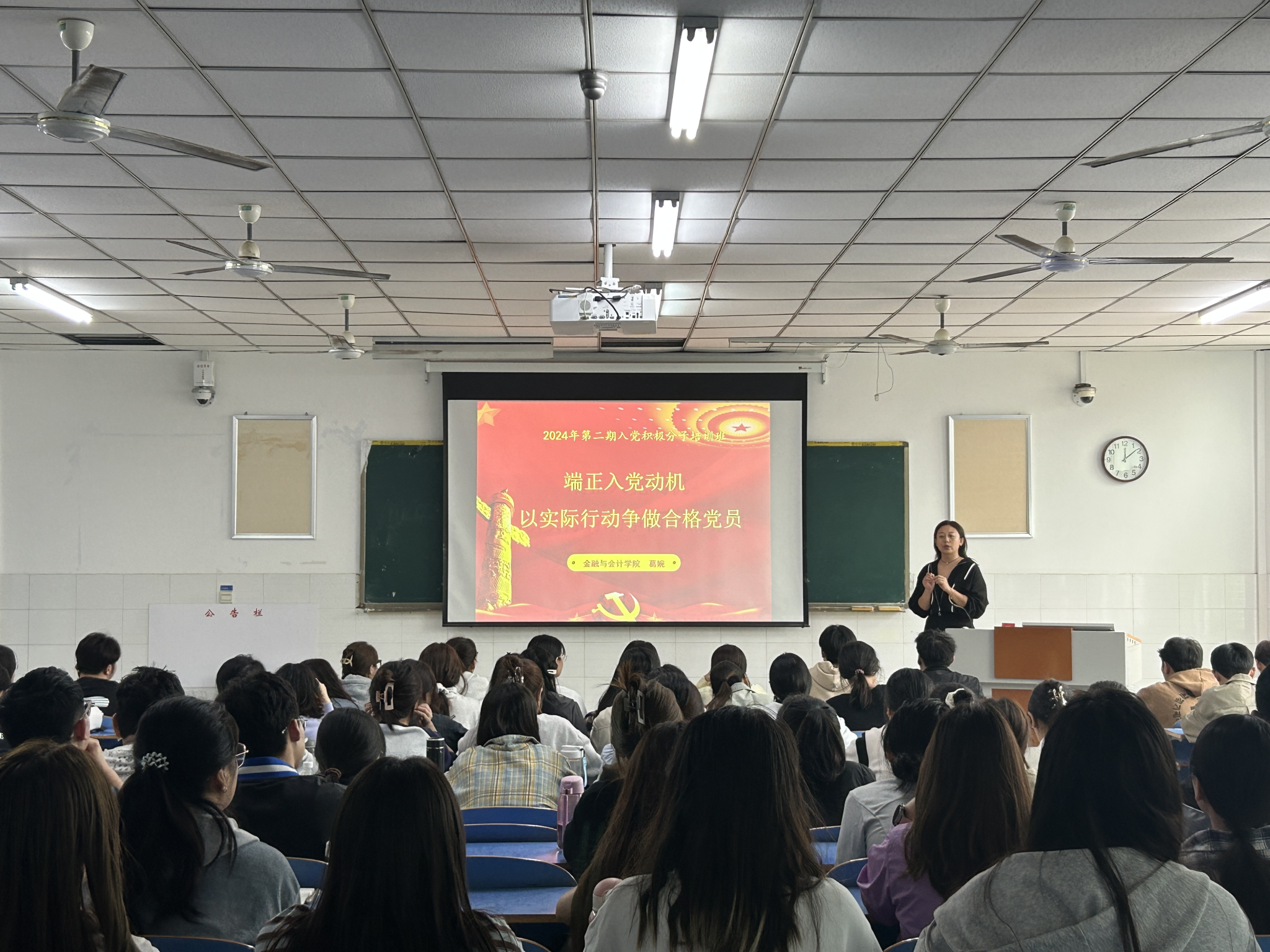 首先,葛老师详细阐明了正确入党动机的内涵,并指出入党动机是党员入党前对党的认识和态度的体现,也是党员入党后能否保持共产党员先进性和纯洁性的重要保证。因此,每位入党积极分子都应该端正自己的入党动机,明确自己的入党目的,时刻保持对党的忠诚和热爱。接着,葛老师从多个方面阐述了如何以实际行动争做合格党员,要有为共产主义和中国特色社会主义事业奋斗终身的坚定信念,要有全心全意为人民服务的思想,要有在生产、工作、学习和社会生活中起先锋模范作用的觉悟。最后,葛老师强调,端正入党动机是争取入党的首要问题,入党积极分子端正入党动机的主要途径是努力学习马克思主义理论,坚持在实践中锻炼和提高自己。