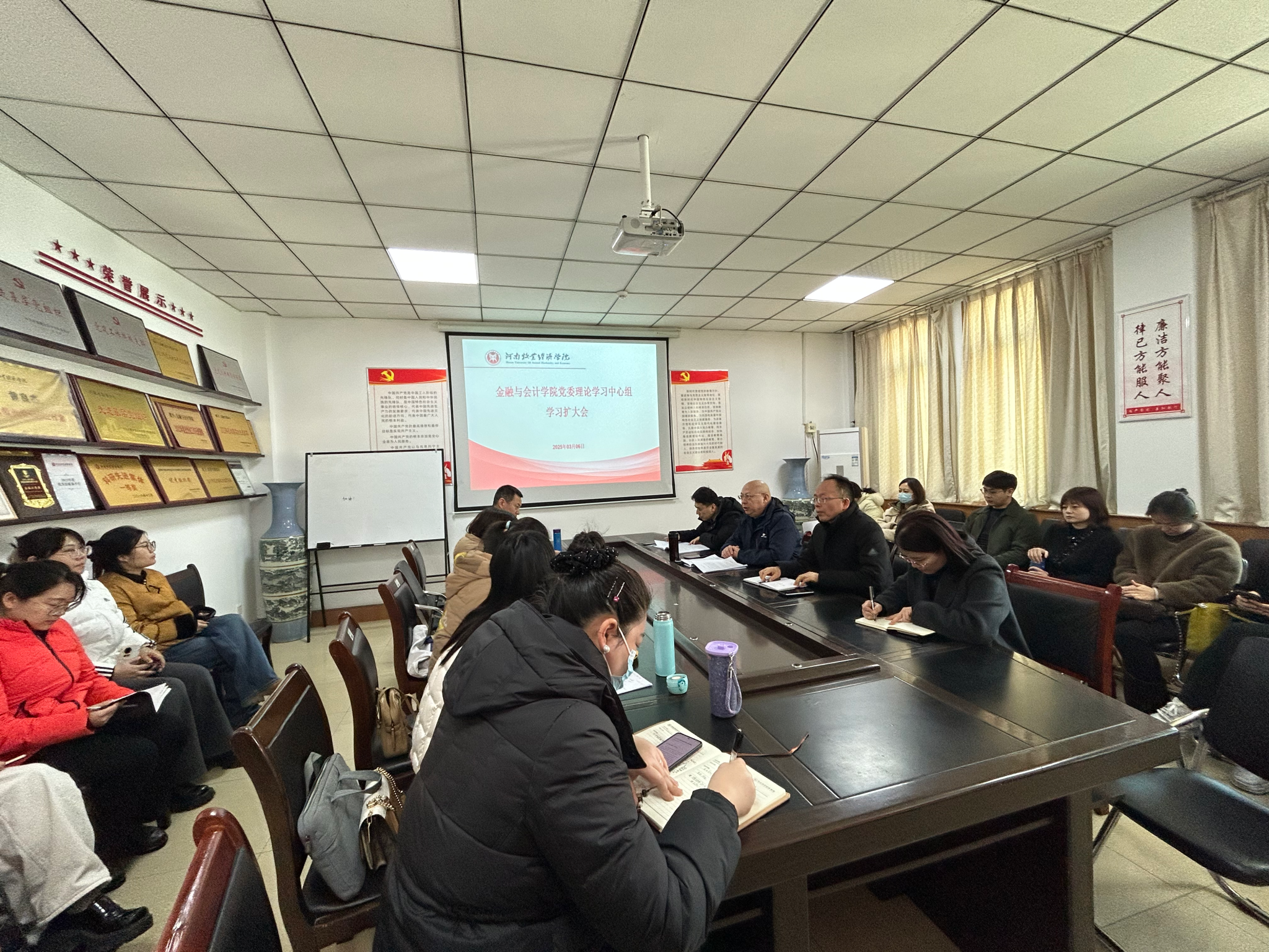 3月6日上午,beat365平台唯一官网党委理论学习中心组学习扩大会在学院514会议室召开,专题学习中国共产党河南牧业经济学院第二次代表大会精神。学院党政领导班子成员、各党支部书记、科级以上干部以及全体辅导员、班主任参加会议。会议由学院党委书记陈复昌主持。