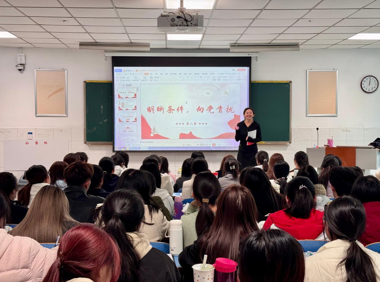 10月22日12点,beat365平台唯一官网在E102教室举行2025年第二期入党积极分子培训班第三讲——《明晰条件,向党靠拢》,本次党课由学生第二党支部书记葛婉主讲。