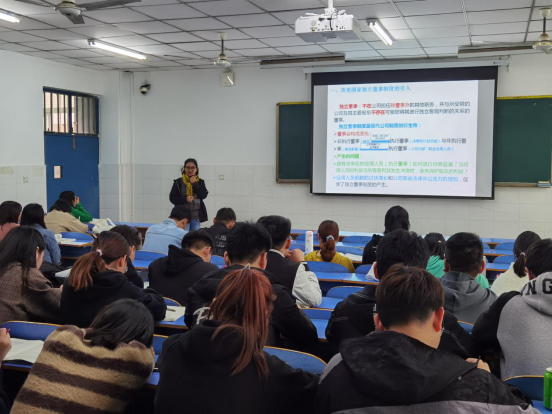 本次授课内容为独立董事:实质重于形式。此部分属于公司治理教授内容中较为重要的部分,涉及独立董事制度的产生与发展,独立董事的独立性,以及独立董事的作用和决策、机制的设计。任丽英老师通过英美国家独立董事制度的介绍,利用美国著名的电动汽车生产商特斯拉集团要求新增独立董事的案例,引入独立董事制度的意义和作用,深入浅出,让学生充分理解了独立董事存在的必要性。在教学过程中,任老师充分运用多媒体等现代化教学手段,既有图文又有短视频,不时地发问,激励学生自主思考,极大的丰富了授课方式,生动形象地将知识传授给学生。整个授课过程语言流畅,思路清晰;教学内容组织合理,结构清晰,内容丰富。
