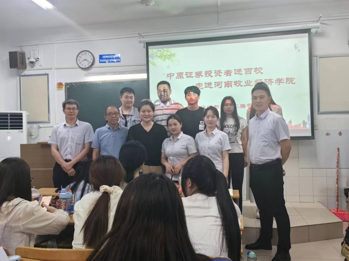 接着,他从金融市场系统风险、行业新规和新政、投资理念、情绪投资等多个角度出发,讲述了价值投资理念,提出应该建立正确的“财商思维”和适合自己的投资模型、投资准则,并采用基本面分析、技术分析和案例分析方式讲解了目前市场面临的困境,也分享了自己的多年经验和总结的可转债投资策略心得。本次参会的中原证券的领导同事,针对学生提出的问题一一做了解答,回答了作为河南省本土证券行业的头部企业的中原证券,该公司的实习要求,实习待遇,以及本公司对金融人才知识结构需求,并针对目前当前市场环境下分析了金融行业的就业选择的问题,他们结合亲身经历分享自己从业路上收获的喜悦幸福、困难挫折,并鼓励同学们为自己树立的目标和理想去努力拼搏。