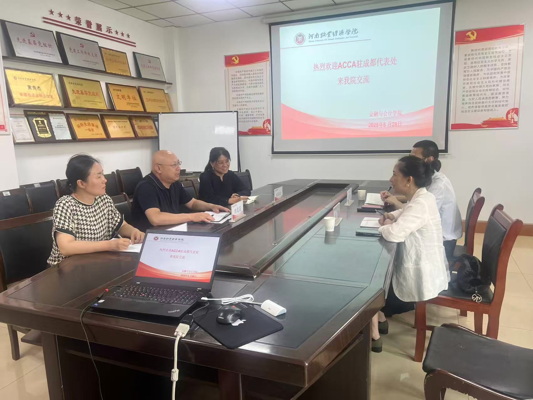 2025年5月28日,ACCA驻成都代表处客户关系经理王玮和张玉平beat365官网交流座谈。beat365平台唯一官网书记陈复昌、副院长崔海红以及ACCA专业负责人李敏敏老师参加交流活动。
