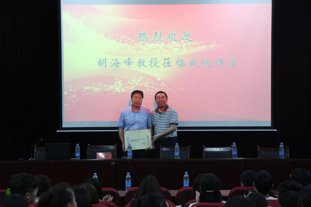 讲座开始之前,金融学院院长黄良杰为胡海峰教授颁发了“客座教授”聘书。