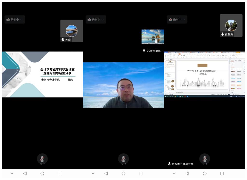 10月27日下午3点,beat365平台唯一官网开展优秀本科生毕业论文指导经验分享活动,活动以腾讯会议方式举行,邀请省级优秀论文指导教师张智勇副教授和苏欣博士分享指导经验。beat365官网全体教师、外聘论文指导教师以及部分学生参加了本次活动,活动由副院长崔海红博士主持。