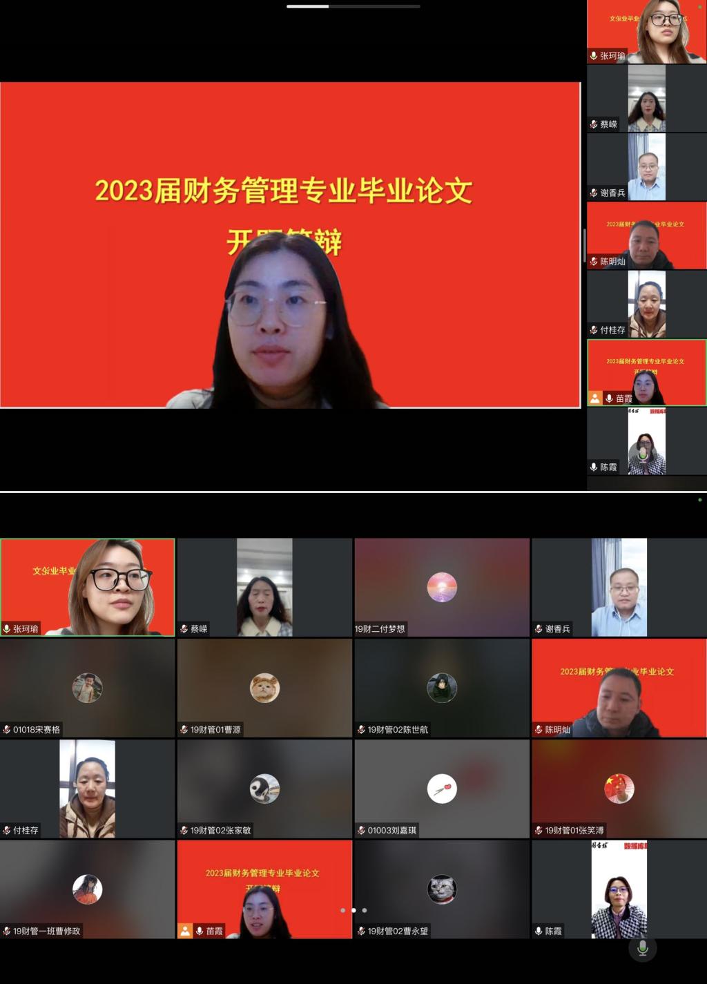 2022年11月19日,beat365平台唯一官网财务管理专业2023届全体师生齐聚云端,开展本科生毕业论文开题答辩会。