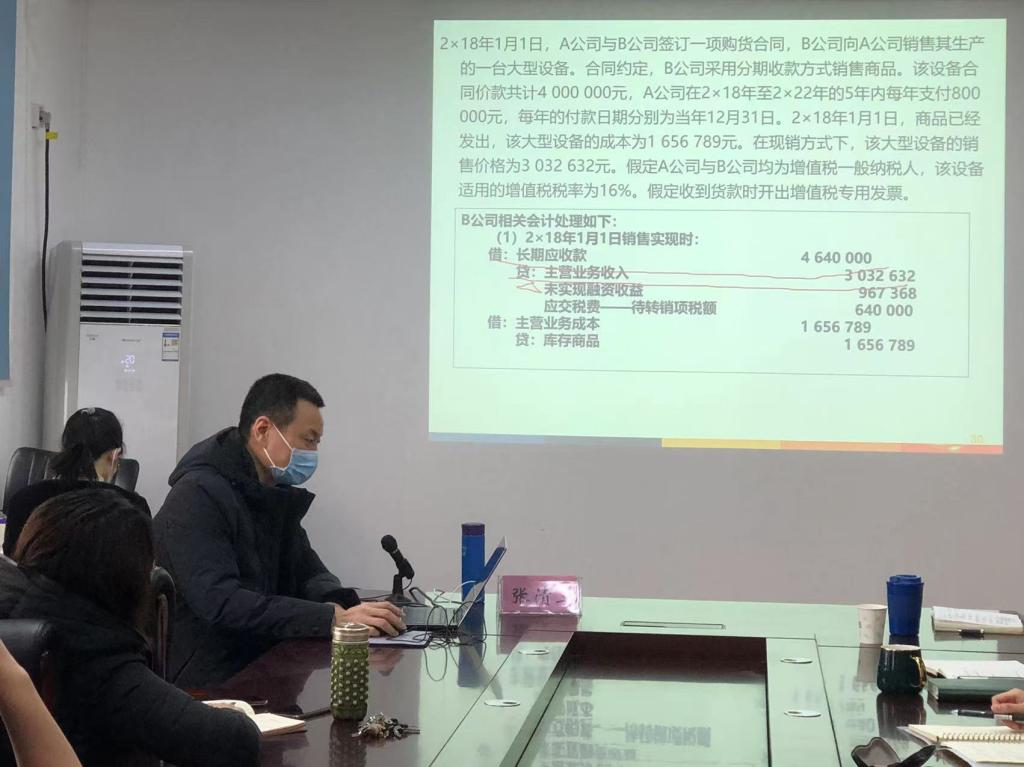 2022年12月9日,beat365平台唯一官网张清玉副教授应中化地质矿山总局河南地质局邀请,就近年来会计准则体系的变化进行培训。针对会计工作所面临的网络信息技术环境挑战,张老师首先就学习会计理论的方法与企业财务人员进行沟通,提出要了解会计智能化发展的方向,强化会计处理理念的学习,重视管理会计的发展方向,真正主动践行业财融合,提升公司治理水平。张老师就近年来新修订会计准则体系所体现的决策有用观、资产负债观、全面收益观、公允价值、现值计量等会计理念进行了详细讲解,提出要将会计理念的学习作为掌握会计准则体系的基础。随后,张老师重点讲解了新修订的收入准则,以资本市场财务造假案例为切入提出收入确认与计量对企业经营成果的重要意义,并就收入确认的控制权转移标准、收入确认时间的界定、收入计量、特殊情况下收入确认等专业知识进行深入讲解,就现行收入准则所提出的收入确认与计量的“五步法模型”重点进行了案例分析与研讨。