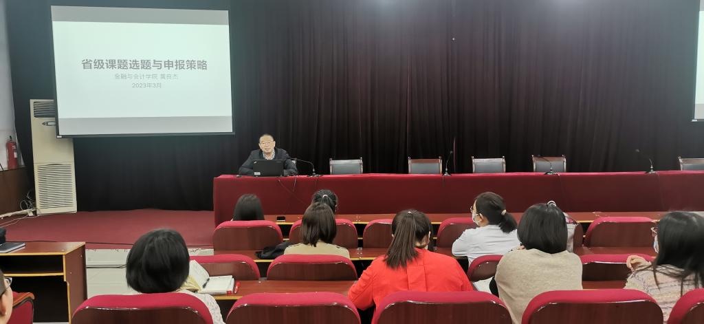 黄良杰教授从课题申报的总体要求入手,结合自身多年的评审经验,运用详实的案例,围绕选题要求、研究内容、预期价值、申报书写作规范等方面进行具体讲解和指导。并结合实际案例进行剖析,详细介绍了课题的申报要领、申报技巧、注意事项和写作逻辑。专题讲座后,参会人员就课题申报、研究中存在的问题进行当面咨询,黄教授进行详尽解答。他鼓励参会老师要加强科研训练,促进自身成长,积极申报各级各类课题,努力产出高水平科研成果,为学院的发展贡献力量。同时,学院也会继续通过多种方式,为提升教师科研能力提供支持。