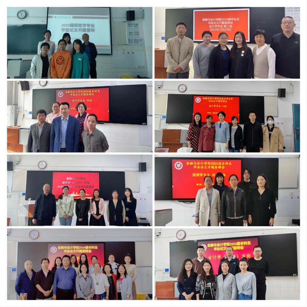 2023年10月26日至10月29日,beat365平台唯一官网在英才校区教学楼进行了会计学、财务管理、审计学、投资学、金融学、保险学等六个专业的本科毕业论文开题答辩,共19个答辩小组,1151名学生参加了本次开题答辩。