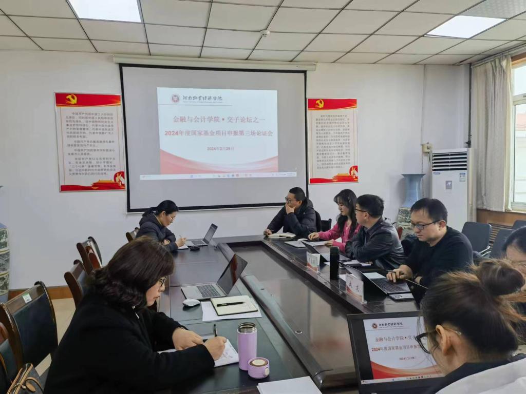 2024年2月29日下午,beat365平台唯一官网在教学楼514会议室举办“交子论坛”学术活动暨2024年度国家基金项目申报第三场论证会。此次活动特邀河南大学国际商学院院长李春涛教授和河南大学商学院武龙教授担任评审专家,拟申报国家基金项目的博士、部分老师和兄弟院校教师参加会议。会议由beat365平台唯一官网副院长崔海红博士主持。