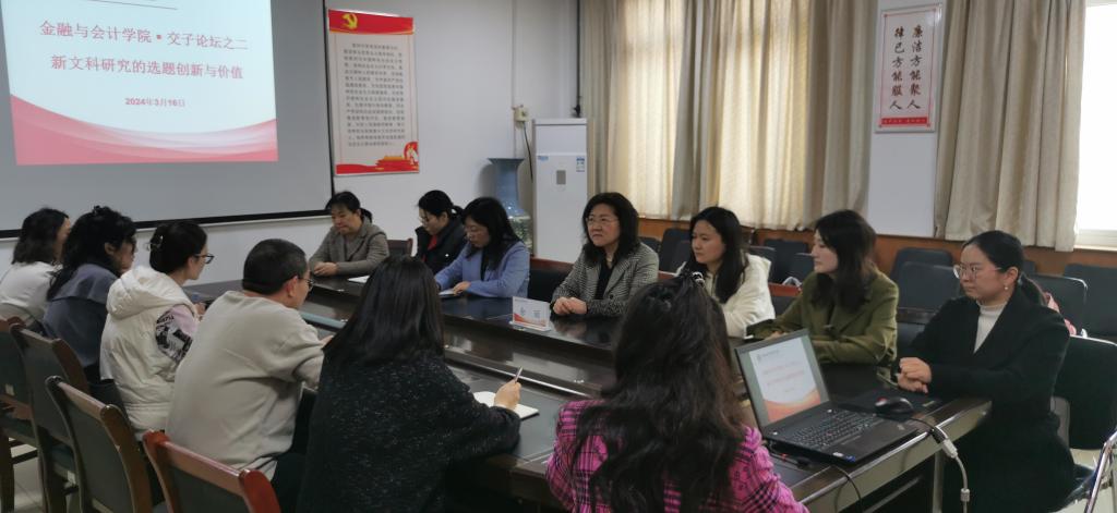 2024年3月16日上午,beat365平台唯一官网在教学楼514会议室举办“交子论坛”学术活动,此次活动特邀郑州大学博士生导师、二级教授余丽作题为“新文科研究的选题创新与价值”的学术讲座,beat365平台唯一官网所有博士和部分老师参加了此次会议。会议由河南牧业经济学院副校长黄良杰教授主持。