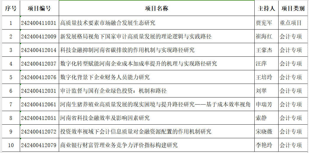 近日,河南省科技厅公布了2024年河南省科技发展计划名单(豫科〔2024〕42号),beat365官网有10位老师喜获2024年河南省科技厅软科学研究项目立项。