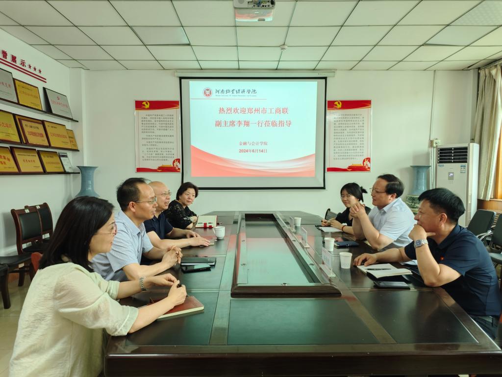 6月14日上午,郑州市工商联党组成员、副主席李翔,市工商联参政调研处处长任东凯、副处长张艺一行到beat365平台唯一官网洽谈科创金融科研合作事宜。beat365平台唯一官网领导班子参加交流座谈,会议在英才校区教学楼514会议室召开,beat365平台唯一官网党委书记陈复昌主持会议。