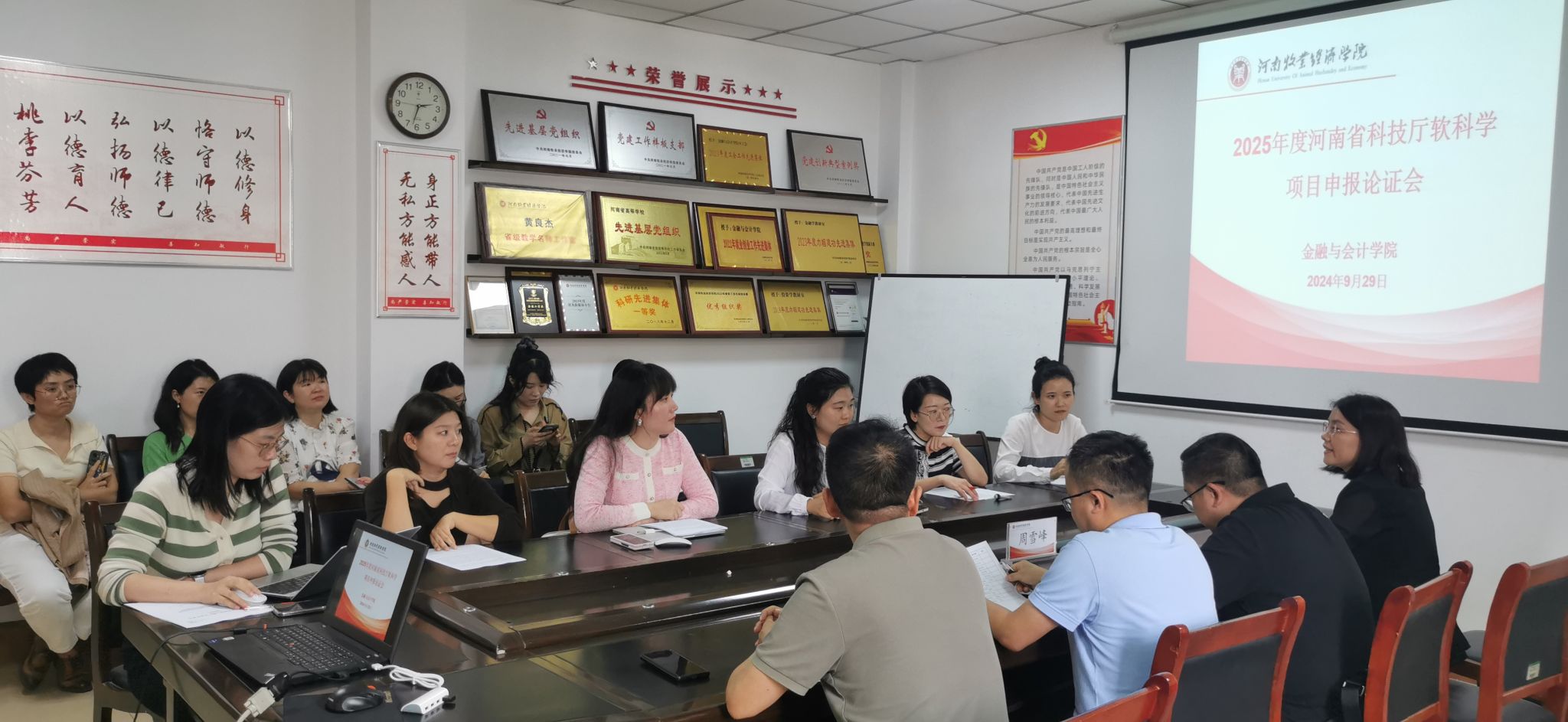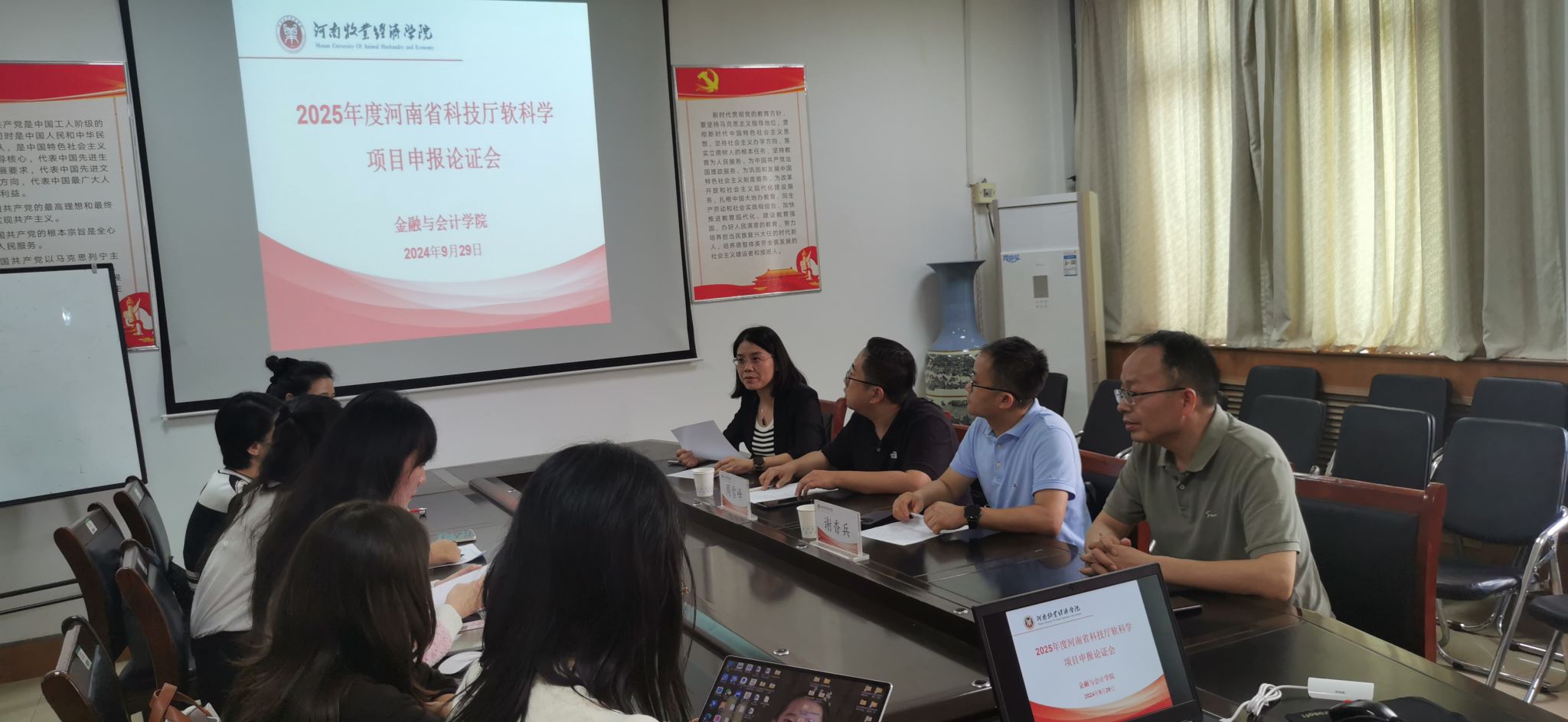 为进一步鼓励beat365官网教师积极参与科研项目申报,提高河南省科技厅软科学项目申报质量,不断提升科研能力与水平。2024年9月29日下午2:30,beat365平台唯一官网在教学楼514会议室召开2025年度河南省科技厅软科学项目申报论证会。本次论证会邀请河南财经政法大学会计学院院长谢香兵教授和郑州航空工业管理学院商学院副院长周雪峰教授作为评审专家。beat365平台唯一官网院长贾宪军教授、项目负责人及部分教师参加了论证会。会议由副院长崔海红博士主持。