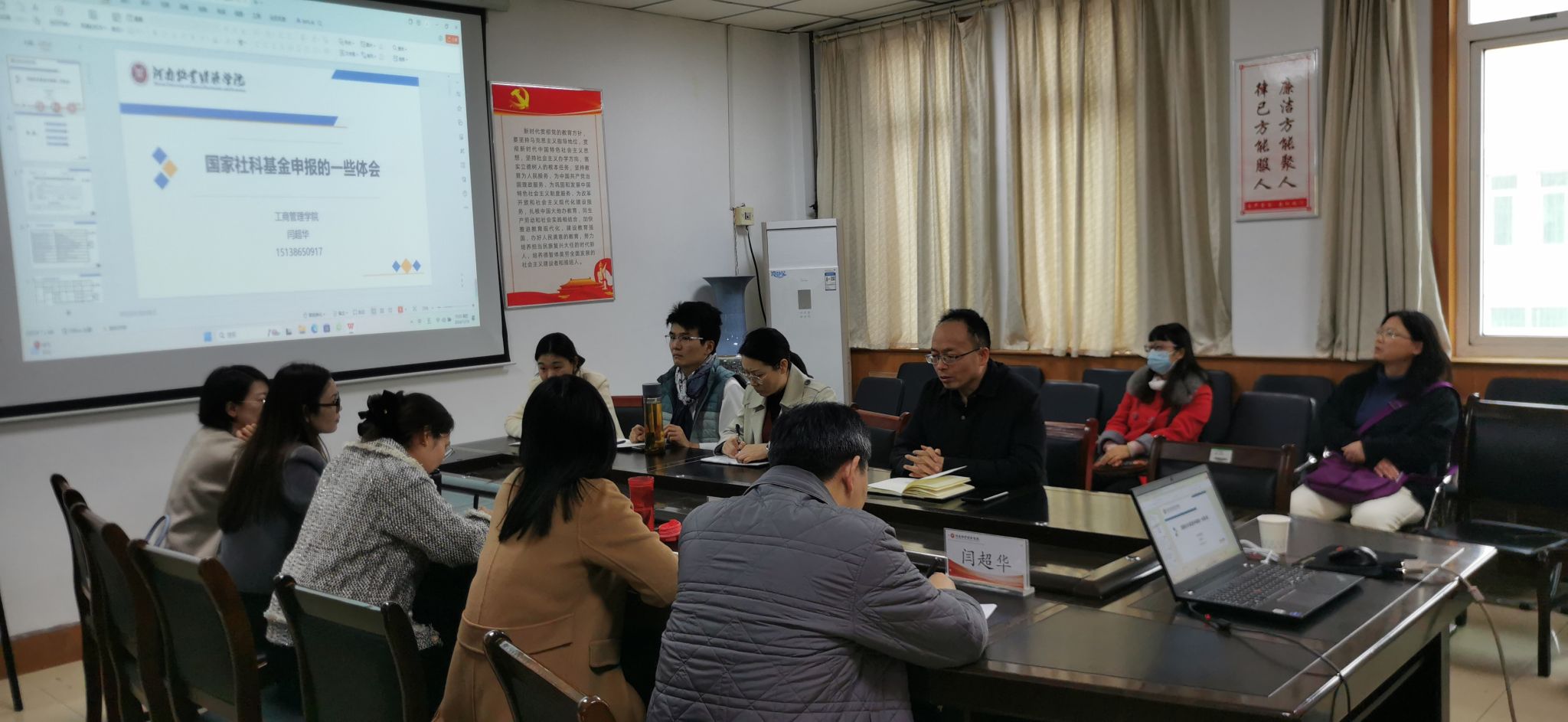 闫超华博士为大家分享了自己国家社科基金申报成功的心得体会,从研究选题、研究论证、申报书细节等方面对国家社科基金项目申报进行了详细介绍。苗霞博士结合个人研究成果,课题申报心路历程分享了研究方向与研究主题选择、课题申报与写作,教育部课题的特点与定位、基于个人研究基础如何申报教育部课题的经验。