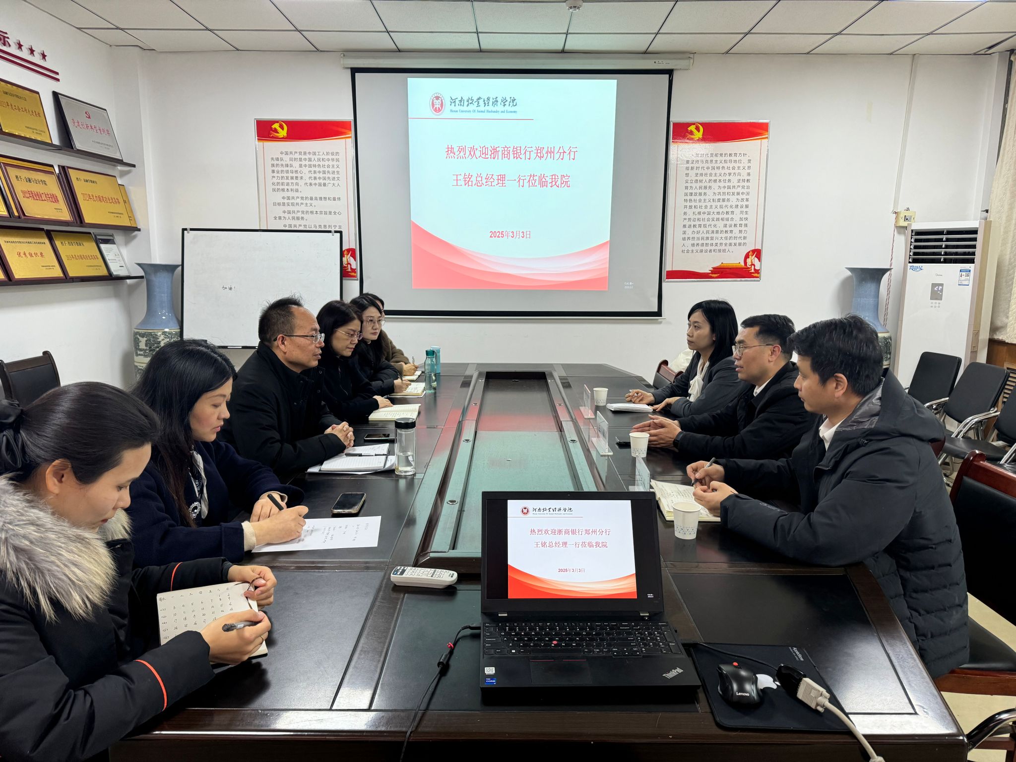 为深入贯彻国家乡村振兴战略实施,探讨如何更好地通过金融服务助力农业产业链发展,3月3日下午,浙商银行郑州分行王铭总经理一行在beat365平台唯一官网514会议室,以“农业供应链金融”为主题与beat365官网展开交流活动,旨在分享农业供应链金融领域的创新实践与经验。beat365平台唯一官网院长贾宪军、副院长崔海红、部分博士及教师代表参加了此次会议。