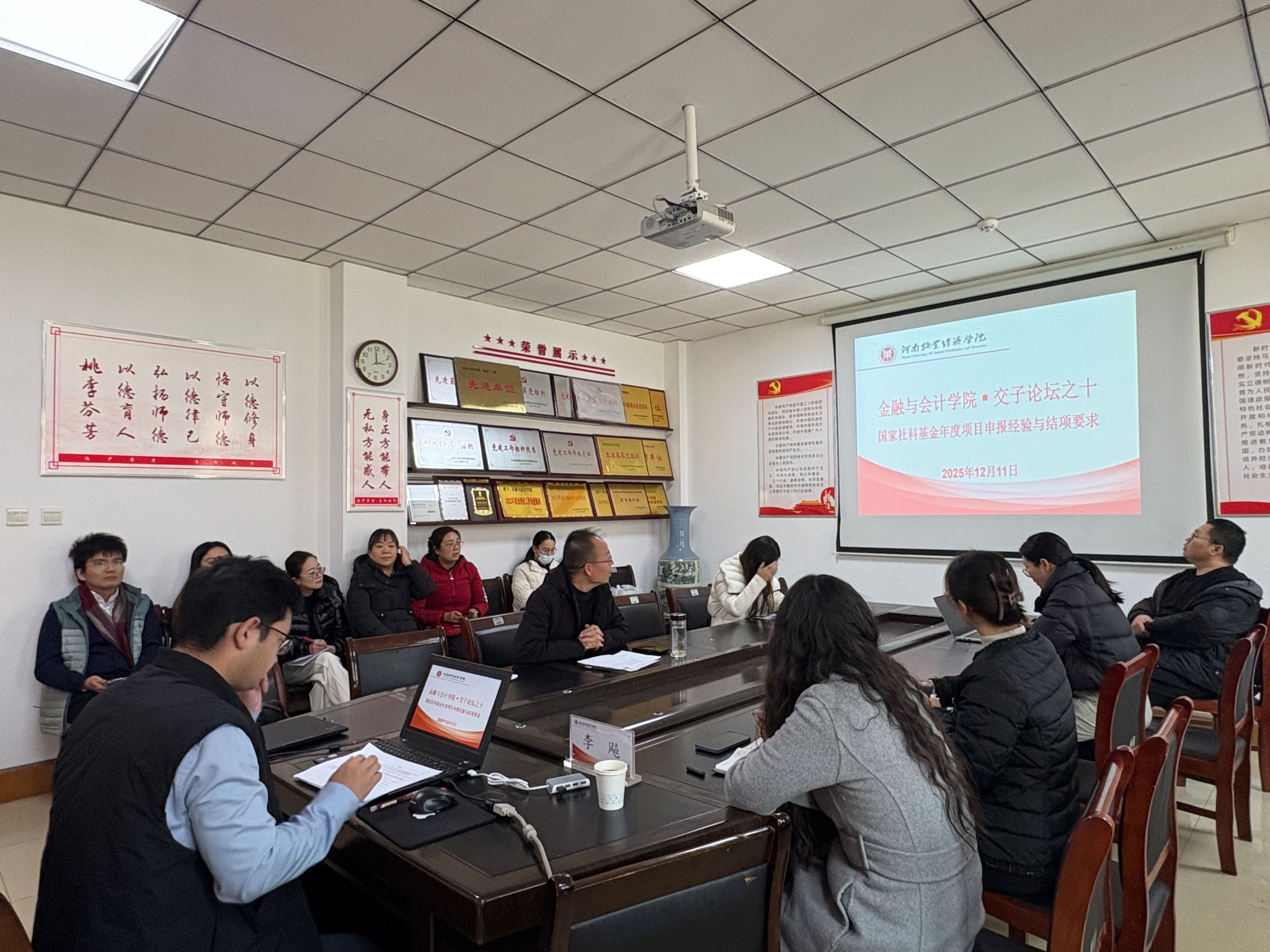 2025年12月11日下午,金融与会计学院在教学楼514会议室举办国家社科基金申报专题指导讲座,特邀郑州大学商学院李飚教授担任主讲,围绕“国家社科基金申报、执行与结题”开展系统讲解,并对学院教师的申报课题进行现场点评与指导。学院博士、部分教师及兄弟学院教师参加了此次讲座,讲座由beat365平台唯一官网院长贾宪军教授主持。