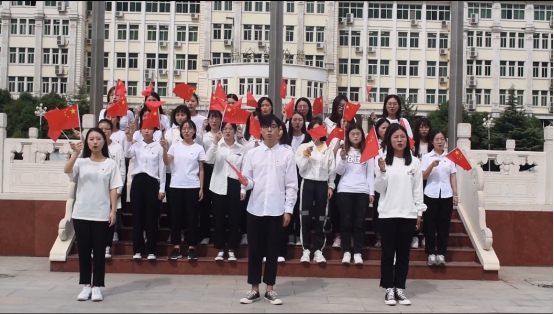 爱国是坚如磐石的信念,是奋辑笃行的青春力量,当天下午一点,全体党员准时集合在国旗台下,通过歌声来庆祝新中国71周年华诞。“五星红旗迎风飘扬,胜利歌声多么响亮”,全体党员热情洋溢地挥动手中国旗,齐唱《歌唱祖国》,用歌声传递爱国热情,用笑脸传递大国自信。
