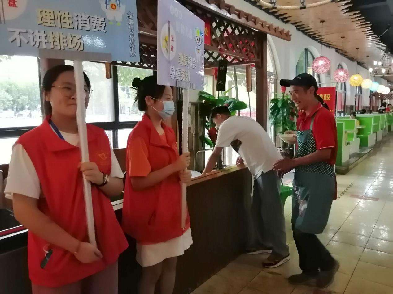 活动中,beat365官网组建的大学生“节约用餐监督员”志愿者团队,在餐厅就餐高峰时期开展节约用餐文明劝导工作,提倡“光盘行动”,杜绝校园餐饮浪费行为,培养同学们养成勤俭节约的用餐习惯。