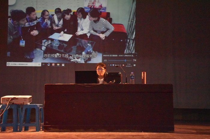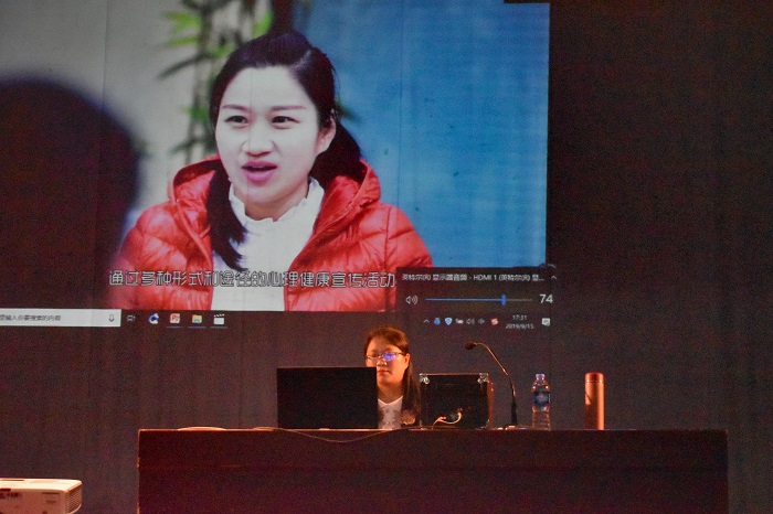 讲座正式开始之前,董老师在台上指导同学们现场进行了游戏互动,充分调动了同学们的热情,活跃了现场气氛。董老师从大学生在校学习阶段的心理状况表现为大家讲解了作为大一新生应该如何适应大学生活,对大学生心理常出现问题的几个方面进行分析解读。此外,她通过视频和PPT介绍了校心理健康中心,告诫同学们要正确了解自己、接纳自己,正视问题,主动解决。随后,董老师向大家讲述了心理问题的含义和心理咨询的重要性,分析心理问题产生的深层原因,并就一些普遍的心理问题提出了一些解决方法。讲座中,董老师以视频的形式向同学们展示了心理健康知识的相关内容,通过分析心理问题典型案例,对学生日常生活适应、环境适应、学习适应、人际关系适应等方面进行了深刻的阐述。最后,董老师给予同学们建议,当遇到困难、有心理疑惑时,切忌羞于表达,应该大胆主动找同学老师倾诉宣泄,寻求帮助才是正确的做法。