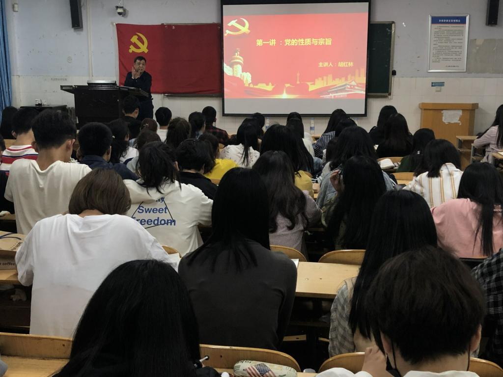 仪式后,党总支书记胡红林进行了第一讲—《党的性质与宗旨》。课堂上,胡书记向学员们深入阐明了党的性质和宗旨决定了中国共产党是一个伟大、光荣、正确的主义。接着,胡书记对中国特色社会主义进入新时代这一重要政治判断做了深入阐述,围绕新时代党的建设总要求,突出加强党的思想建设,以坚定理想信念宗旨为根基,以调动全党的积极性,主动性,创造性为着力点。作为新时代一名入党积极分子应以习近平新时代中国特色社会主义思想武装头脑,要充分认识入党积极分子培训的重要性,积极参加党内有关的活动,并经常向党组织汇报自己的思想工作情况。最后,胡书记强调五四运动以来中国青年起到某种先锋队的作用,中国梦将在一代一代青年的奋斗中实现。