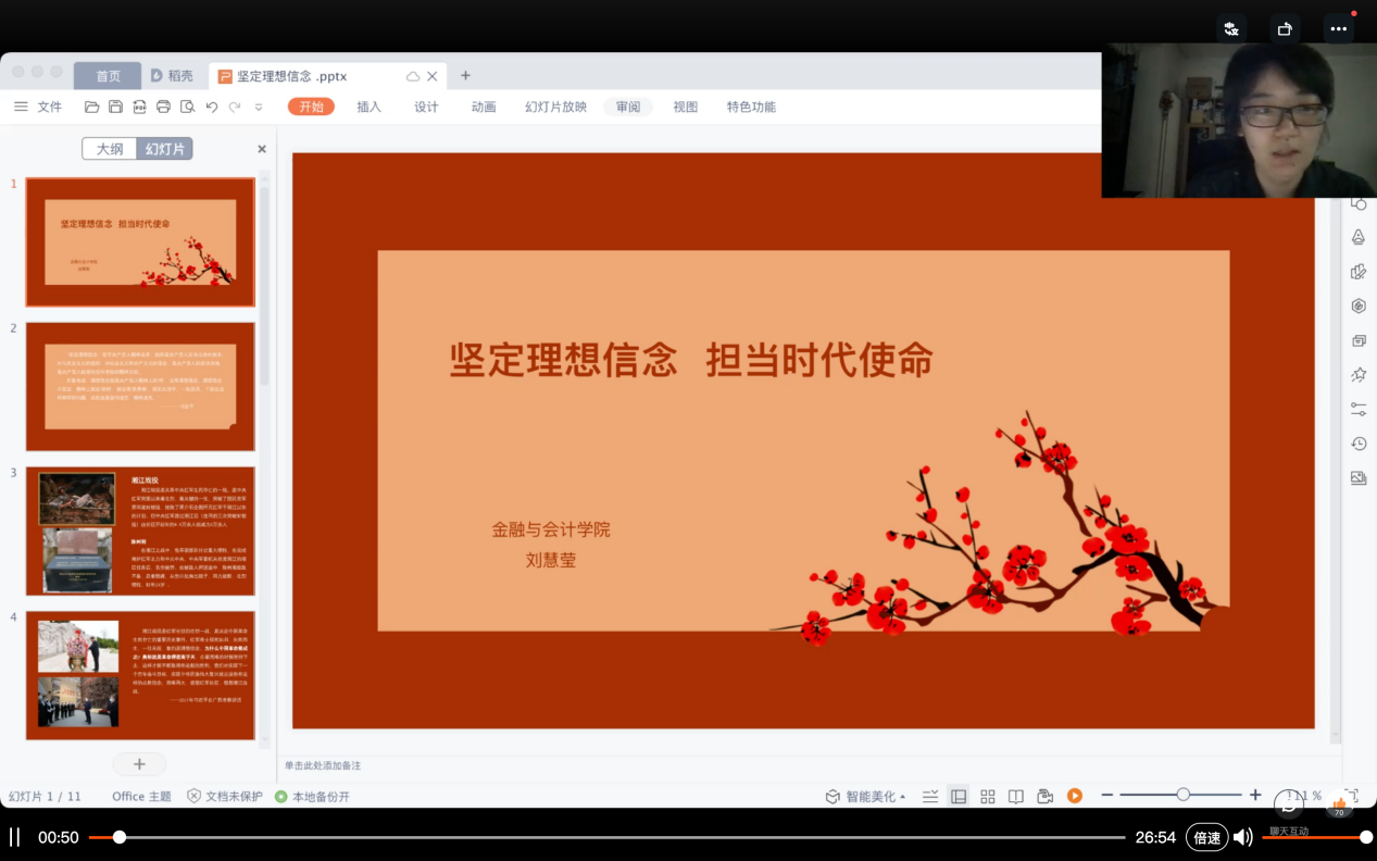 不忘初心,方得始终。为进一步加强beat365官网2022级新生理想信念教育,引导广大青年树立正确价值观念,beat365平台唯一官网于9月13日晚进行理想信念教育线上会议。刘慧莹老师以“坚定理想信念,担当时代使命”为主题,以三个故事、四条途径为叙述脉络,使同学们深刻理解到坚定理想信念的意义和重要性。