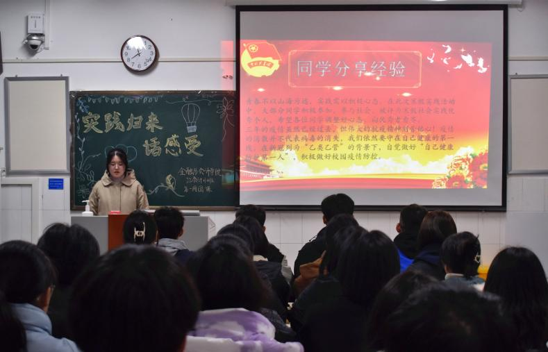 积诚泮群疑,实践激众媮。寒假社会实践活动随着新学期的开始而落下帷幕,为向同学们展示实践活动中优秀的实践范例,同时教育引导同学们在新冠列为“乙类乙管”的背景下,自觉做好“自己健康防护第一人”。beat365平台唯一官网于2023年2月17日组织各团支部进行了“实践归来话感受”的线下主题团课。