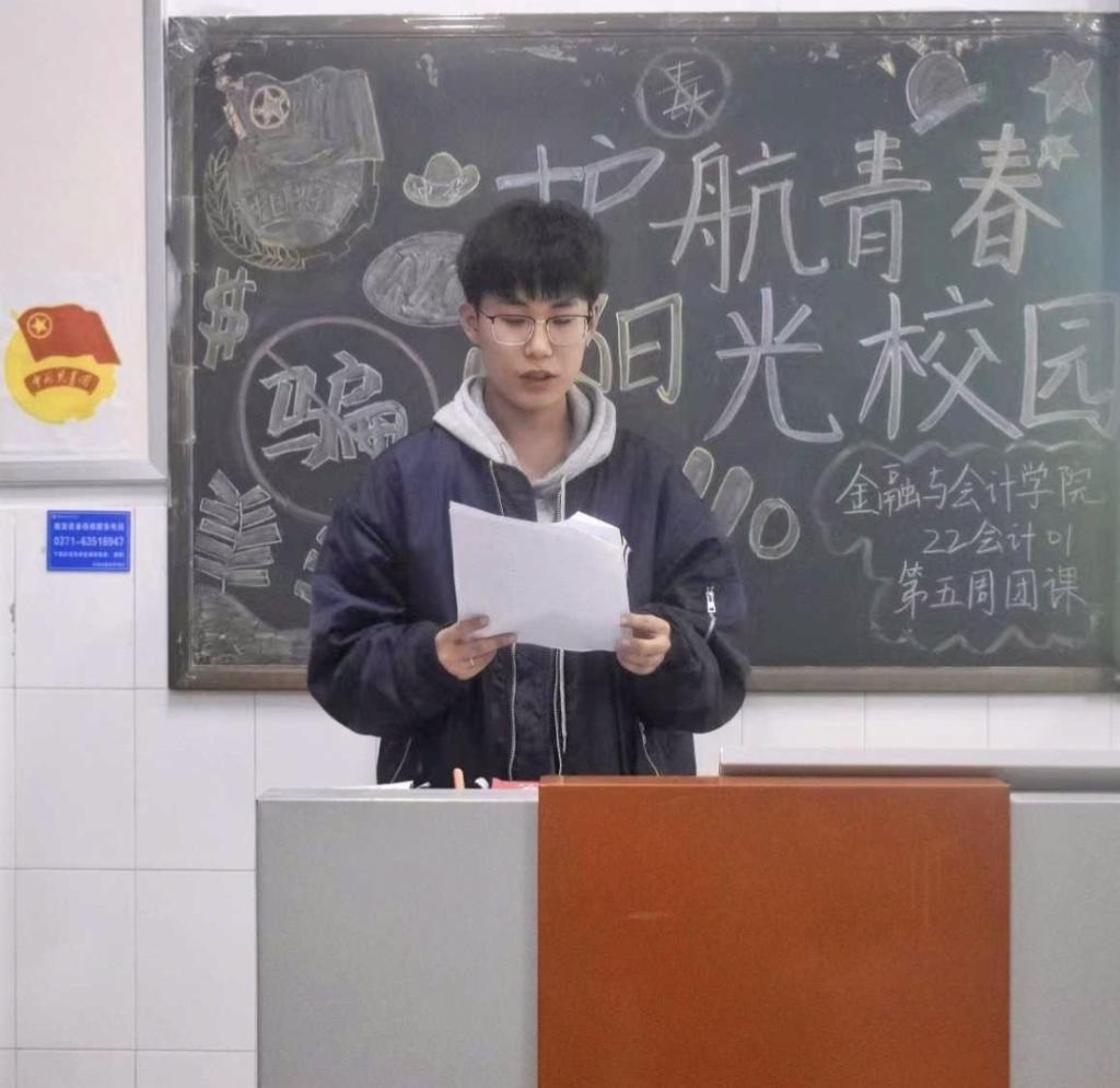 伴随着嘹亮的团歌声,各团支部组织的团课相继开展。各团支部组织同学认真学习了反诈、防患、禁毒、消防安全等相关知识,从财产安全、网路安全、交通安全、消防安全等多方面学习了各种防灾避险知识与注意事项,并对所见所闻的真实案例做出分析,让同学们更深入了解安全问题,增强自我防范意识和法治观念,同时各团支部呼吁大家要时刻防范生活中的安全隐患,自觉成为守护自我安全的第一责任人。