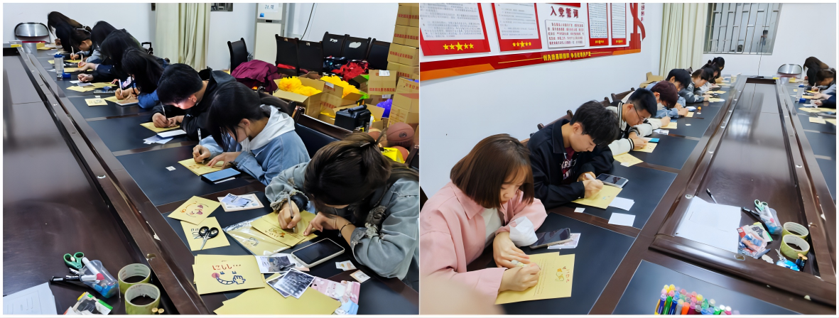 在这个互联网高度发达的快节奏时代,手写信成为了不可多得的一种奢侈的浪漫。青年志愿者们通过书信与小朋友们第一次建立联系并对他们送上了温暖的关心。在书信中,大家还附上了校园的风景照和个人的生活照,并留下了自己的联系方式。一信一故事,一字一温暖。在信的串联下,青年志愿者们把爱洒在字里行间,把关心和温暖融入每滴笔墨,所有的语言都化作了笔尖的温柔。一封封温热的书信将跨过地域的限制,送达到邓州市高集镇立德学校的小朋友手中。