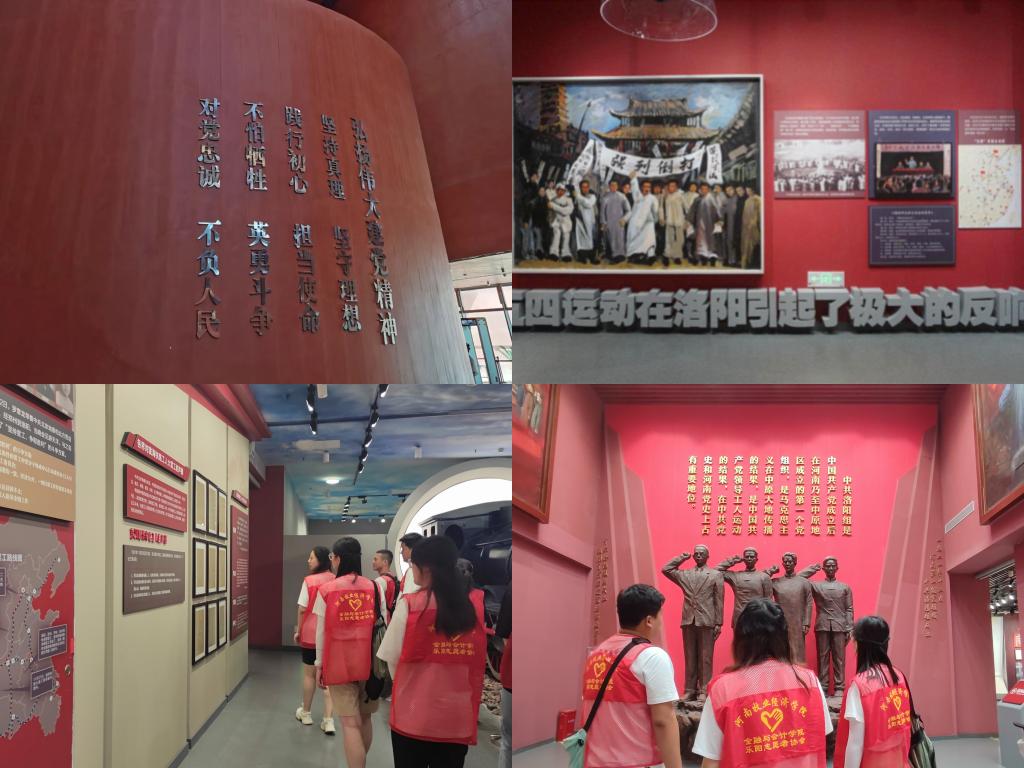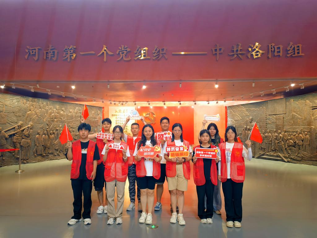 为热烈庆祝中国共产党成立102周年,激励同学们深入贯彻落实习近平新时代中国特色社会主义思想和党的二十大精神,在思想上、行动上积极向党组织靠拢;beat365平台唯一官网暑期非物质文化志愿者团于7月1日下午在学生第二党支部书记葛婉和组织委员陈阳老师的带领下,参观中共洛阳组诞生地纪念馆。