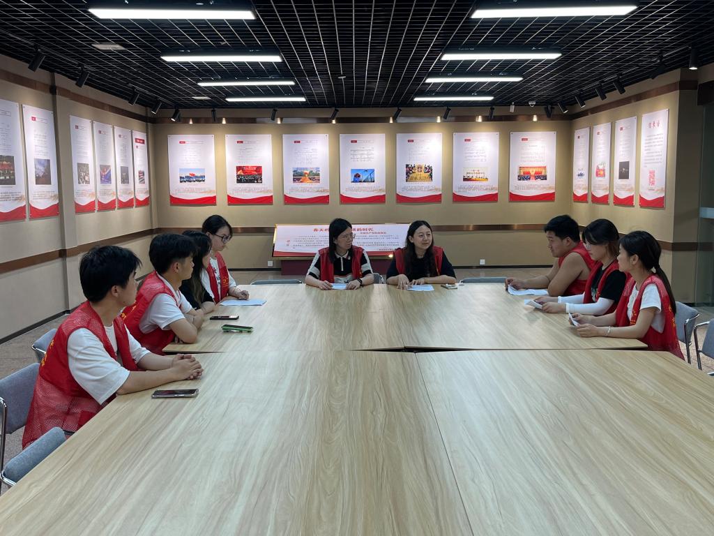 参观结束后,大家在纪念馆会议室交流讨论了各自的心得体会,王聪聪同学表示:深入了解了早期共产党人立志在民族危难之际带领劳苦大众过上好日子的丰功伟绩,感悟到共产党人在新的历史时期的神圣使命;谢赛燚同学表示:亲身感受到革命岁月里老一辈革命家大无畏的革命精神;龚战飚同学表示:深刻体会到中国共产党在艰苦卓越岁月里的奋斗精神;张金珂同学表示:将用实际行动践行革命先烈遗志,承担起历史重任,为实现中华民族伟大复兴贡献自己的力量。接着,陈阳老师提出了对同学们的要求:一是永葆初心、牢记使命、坚定理想信念;二是持续性学习知识,不断提高自身能力和素质。会议的最后,葛婉老师指出,实践队员应该赓续红色血脉,汲取奋进力量,传承红色基因,发扬艰苦奋斗、勇往直前的革命精神,将精神力量内化于心、外化于行,积极投身到社会主义事业建设上来。