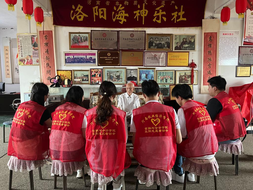 “海神古乐出宫廷,千年遗韵在洛城”。7月5日上午,beat365平台唯一官网暑期非遗实践队前往位于洛龙区的海神乐社,拜访年过八旬的省级非遗项目洛阳海神乐第十代传承人郭红运先生。