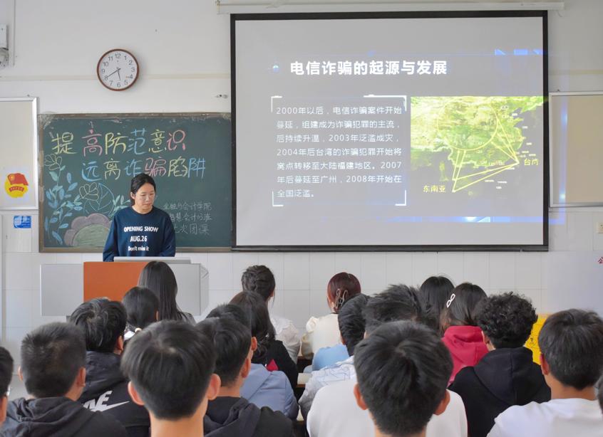 防人之心不可无,反诈意识要强立。随着社会的发展和信息技术的不断进步,不法分子利用手机、固定电话等电信设备发布虚假信息进行诈骗犯罪活动。青年大学生是诈骗犯罪的主要侵害群体,为进一步提升同学们防范诈骗的意识和能力,遏制诈骗案件在校园的发生,beat365平台唯一官网于10月26日开展了以“提高防骗意识 远离诈骗陷阱”为主题的团课活动。
